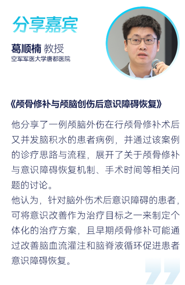 在會議下半場主題討論環(huán)節(jié)中,圍繞“兒童顱骨缺損患者的修補策略”、“顱骨缺損合并腦積水的治療策略”及“親水涂層顱腦外引流在臨床中的應(yīng)用體會”等顱骨修復(fù)相關(guān)熱門話題,大家各抒己見,從各自在臨床工作中遇到的難題與解決方法進(jìn)行溝通交流,并結(jié)合自身經(jīng)驗積極答疑解惑。